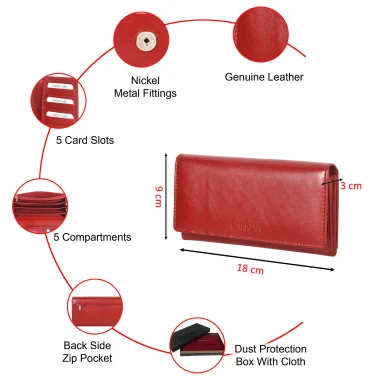 Sassora Genuine Leather Red RFID Protected Purse (5 Card Holders)