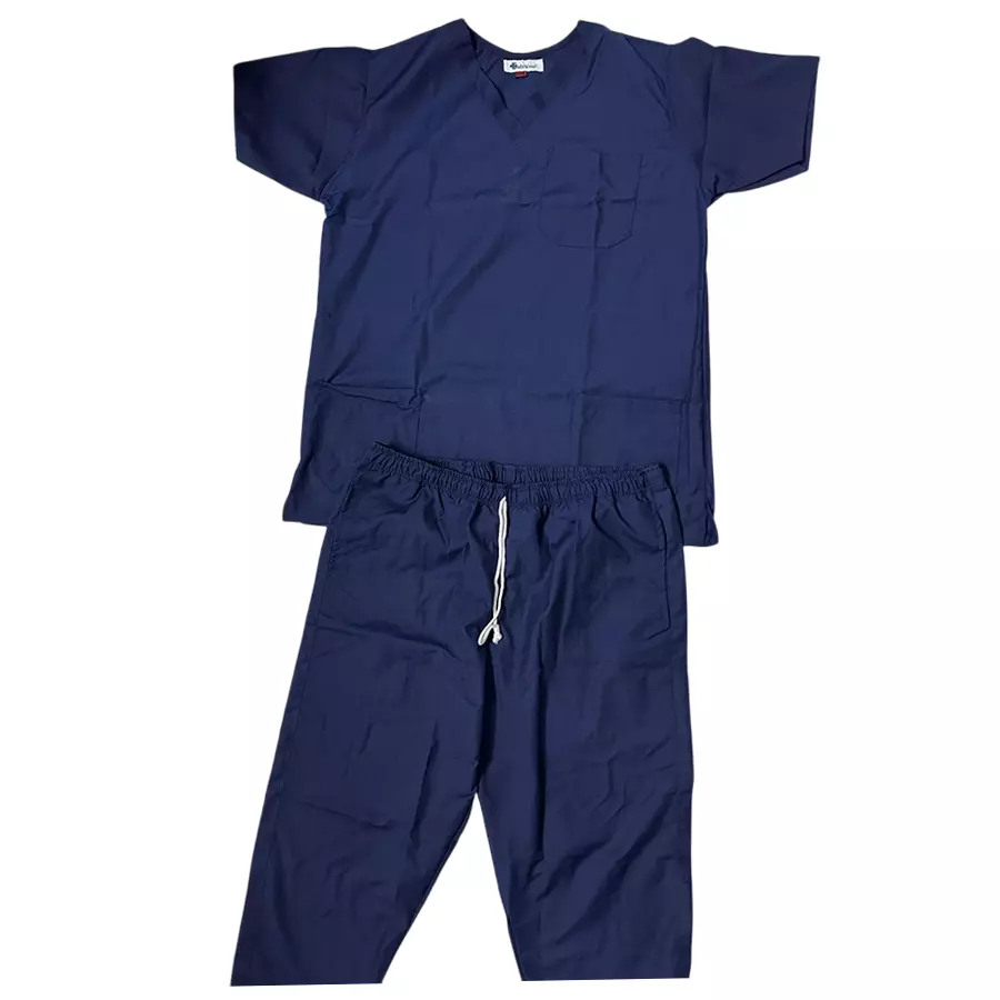 Cotton Polyester Blend Plain Type Navy Blue Scrub Suit for Hospitals & Clinics