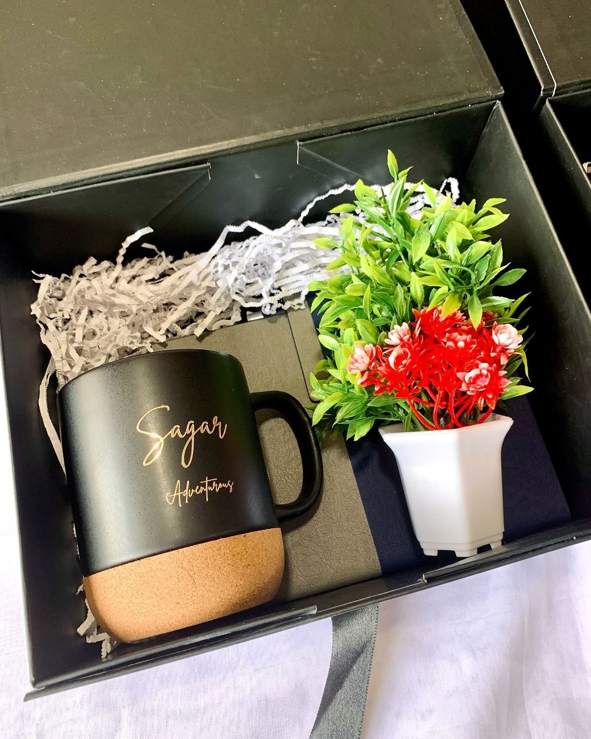 A thoughtfully curated corporate gift set featuring a stylish mug, a premium diary, and a refreshing live plant—perfect for creating a lasting impression while promoting growth and productivity.